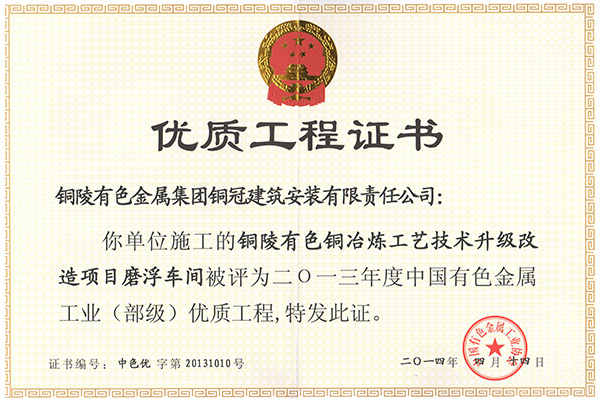 • 銅山磨浮—安裝優(yōu)質(zhì)工程獎